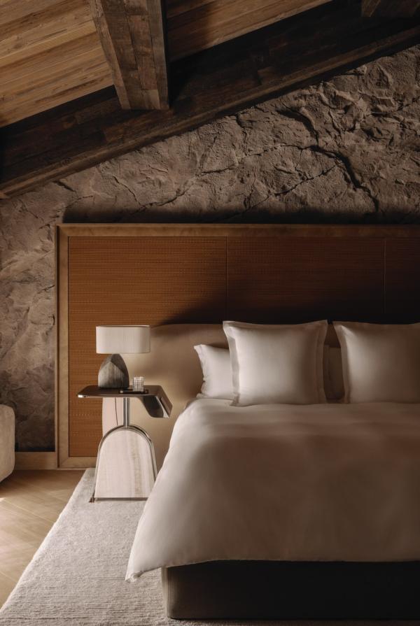 Het chalet in Courchevel, ontworpen door Tristan Auer, al verantwoordelijk voor de gemeenschappelijke ruimtes van het Hôtel de Crillon en verschillende internationale projecten, is een warme herinterpretatie van alpine luxe, geïnspireerd door de natuurlijke grootsheid van de Alpen. De 51 kamers, waaronder 32 suites van minstens 50 m² (een echte luxe in Courchevel), worden gekenmerkt door gebogen lijnen, een palet van warme tinten en edele materialen: lichte en donkere houtsoorten, beige fleece tapijten, bruine leren of bouclette banken en fauteuils, marmer in de badkamers, gedempte verlichting en lichte gordijnen. Een extra bonus: alle kamers hebben een balkon of terras, met uitzicht op de pistes of het dorp. Voor een verblijf met familie of vrienden hebben sommige familiesuites twee slaapkamers, terwijl het Appartement du Jardin Alpin de muren nog verder oprekt met vier slaapkamers, een keuken, een woonkamer en zelfs een eigen bioscoopzaal.