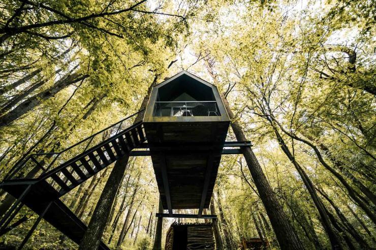 For an unusual getaway in the heart of nature, or a last-minute weekend getaway, head for ICI- Simply Silence, on the edge of the Belgian Ardennes. This unique concept offers 12 perched cabins, minimalist and designer, perfectly integrated into their environment. There's no WiFi here, just the rustle of trees and starry nights. In the morning, a homemade breakfast with local flavors awaits the whole family, before a day punctuated by hikes, wildlife observation and evenings by the fireside. We recommend the "In the Trees" refuges, six cottages nestled in an 11-hectare forest near the village of Humain. Three styles to choose from: Glass Cube, Flying Farmhouse or Tower of Books. Inside? 31 m² suspended between heaven and earth, with panoramic bay windows, a fully-equipped kitchen and an intimate terrace for gazing at the stars... or enjoying an aperitif. A natural interlude, ideal for getting back to basics on a magical family weekend.